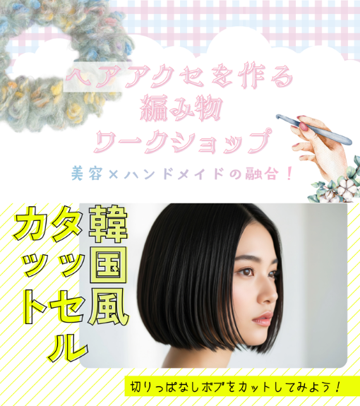 ①美容×ハンドメイドの融合!ヘアアクセを作る編み物ワークショップ