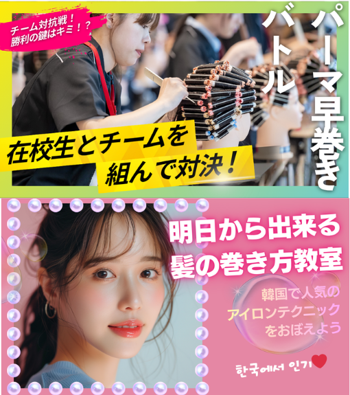 在校生とチームを組んでパーマ早巻き対決!勝利チームには…